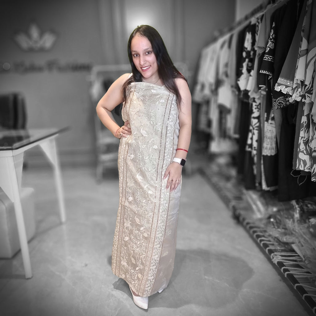Drape yourself in timeless elegance with this Unstitched Partywear Suit.