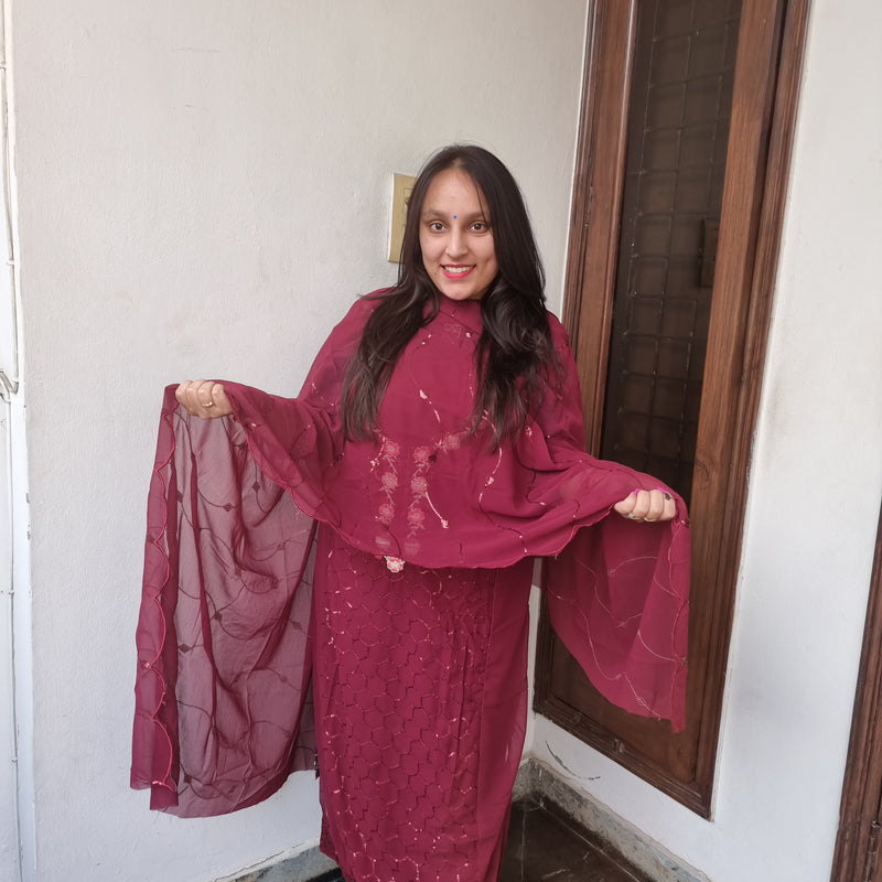Elegant Wine Georgette Suit