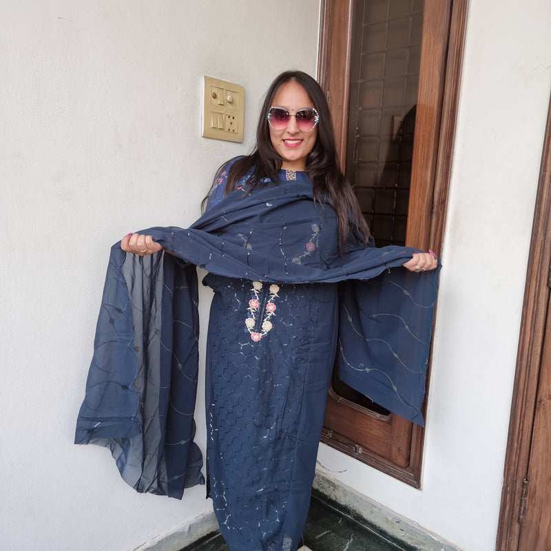 Midnight Sparkle Georgette Suit