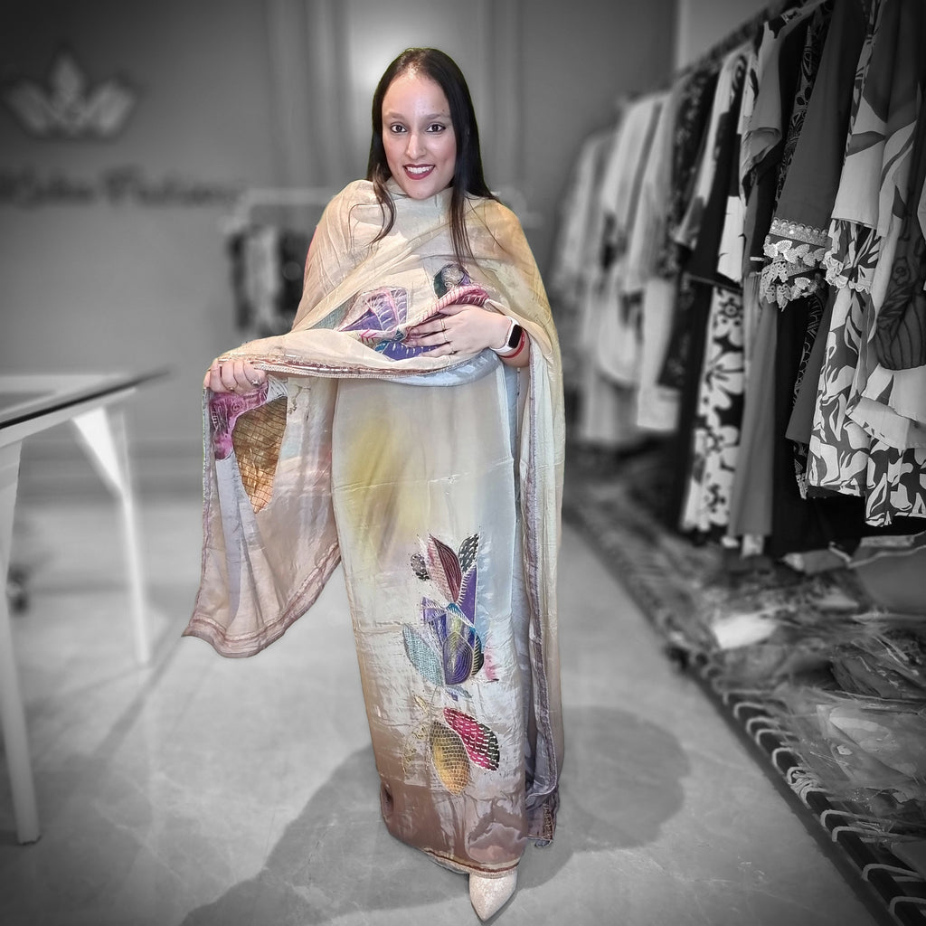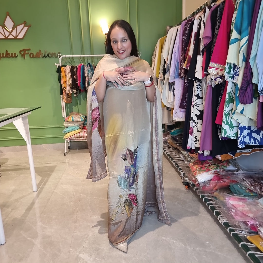 Elevate your festive style with this Pure Crepe Unstitched Partywear Suit in a sophisticated mouse color base. Designed with a luxurious drape and soft texture, it features artistic digital prints that add a modern and vibrant touch. The flowing dupatta with bold digital motifs enhances the overall elegance, making it a perfect pick for parties, festive occasions, and evening gatherings.