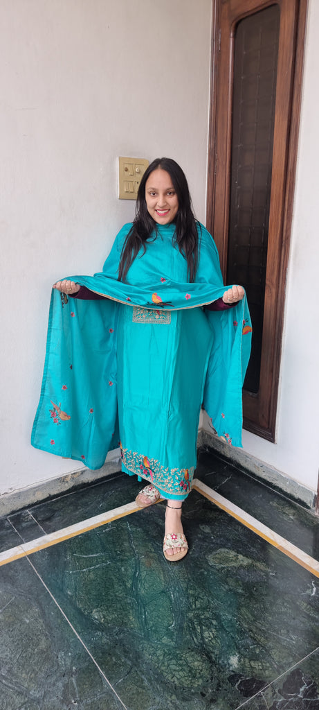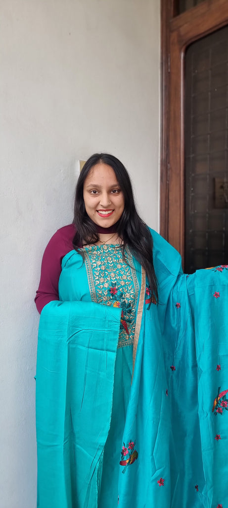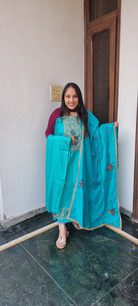 Be it festivals, casual gatherings, or special celebrations, this turquoise suit is a versatile choice. Its vibrant color and intricate embroidery make it a timeless piece that exudes grace and femininity.